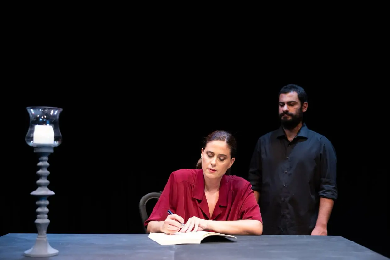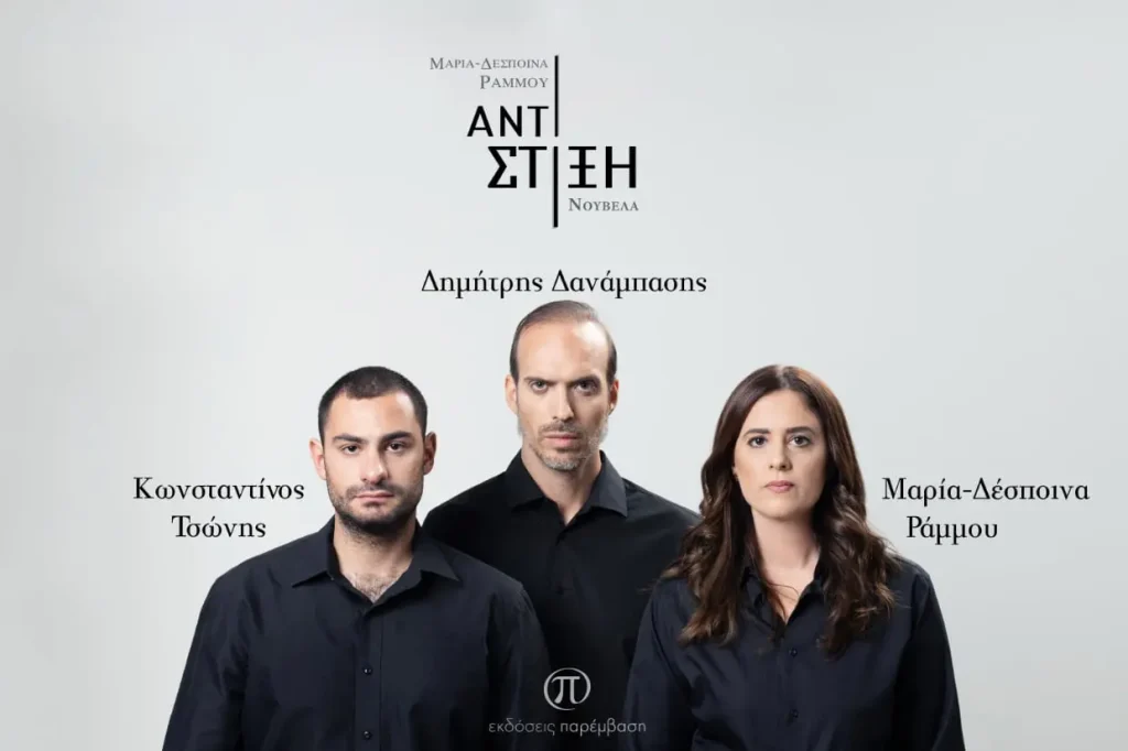 «Η θεατρική τηλεταινία μικρού μήκους με τίτλο Αντίστιξη αποδίδει σε εύληπτη και σύντομη μορφή (7 σκηνές) την πλοκή της μεταφορικής γυναικοκτονίας και της τιμωρίας ενός συζυγοκτόνου, που παρουσιάζονται στην ομώνυμη νουβέλα. Το θεατρικό γυρίστηκε στο θέατρο Σοφούλη τον Αύγουστο του 2023 με επαγγελματίες ηθοποιούς και προβλήθηκε στο 7ο Λογοτεχνικό Συμπόσιο Κοζάνης (Νοέμβριος 2023). Ξεκινά με τη σκηνή ταφής της Γλυκερίας, που τοποθετεί τον θεατή στο επίκαιρο φαινόμενο των συζυγοκτονιών, ενώ ακολουθεί η καταδίωξη του παντρεμένου Αλβέρτου από τις κάμερες, λόγω του σκανδάλου που δημιουργήθηκε με τη «σχέση» και τον φόνο της Γλυκερίας. Εν συνεχεία βλέπουμε σε δύο σκηνές τη διαλογική αντιπαράθεση Γλυκερίας-Αλβέρτου, όσο ‘συγγράφουν’ το έργο τους και στο τέλος την αφήγηση του φόνου της Γλυκερίας από τον έγκλειστο Ευθύμη.»